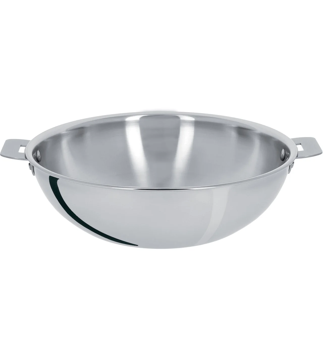 La sartén wok Casteline posee 5 capas de aluminio y acero inoxidable que procuran una excelente transferencia de calor.