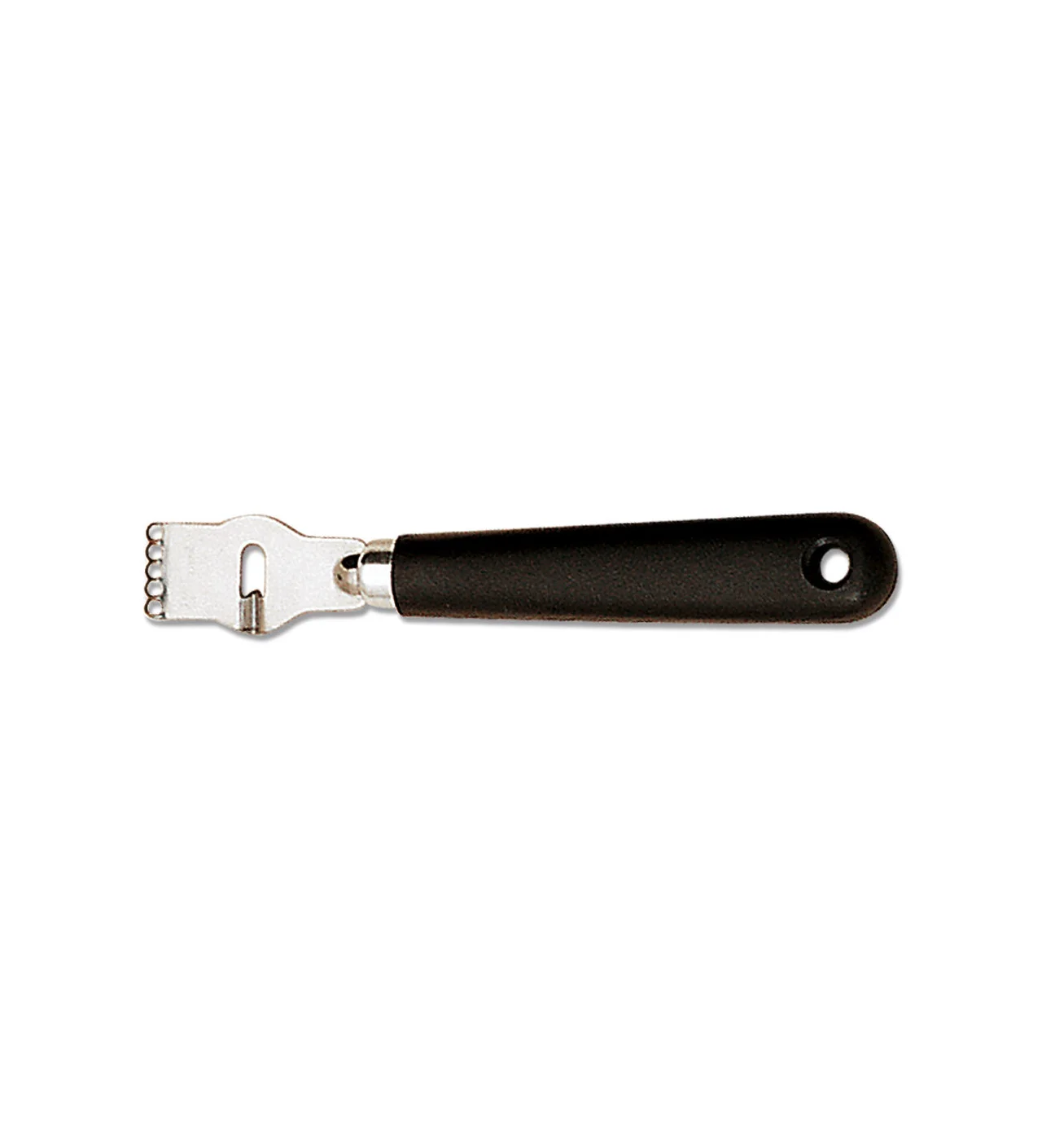 El zester y acanalador de cocina de Déglon es apto para diestros y está hecho de acero inoxidable, con una virola que brinda estabilidad.