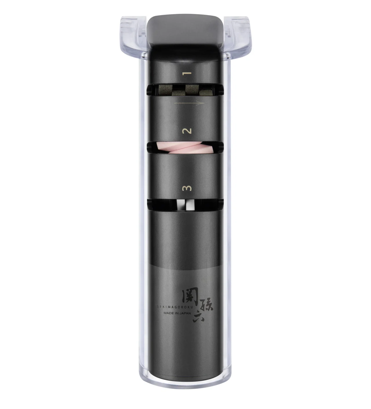 Este afilador de cuchillos de la reconocida marca japonesa Kai te permitirá afilar tus cuchillos de cocina de hoja simétrica a la perfección, en tres simples pasos. El primer paso tiene rodillos de piedra de diamante para eliminar excedentes e imperfecciones del filo. El segundo paso, de piedra de cerámica, afina el trabajo del paso anterior. El afilado profesional de este afilador manual se termina con una chaira de cerámica de grano fino que pule el filo para brindar a tu cuchillo un corte excepcional.