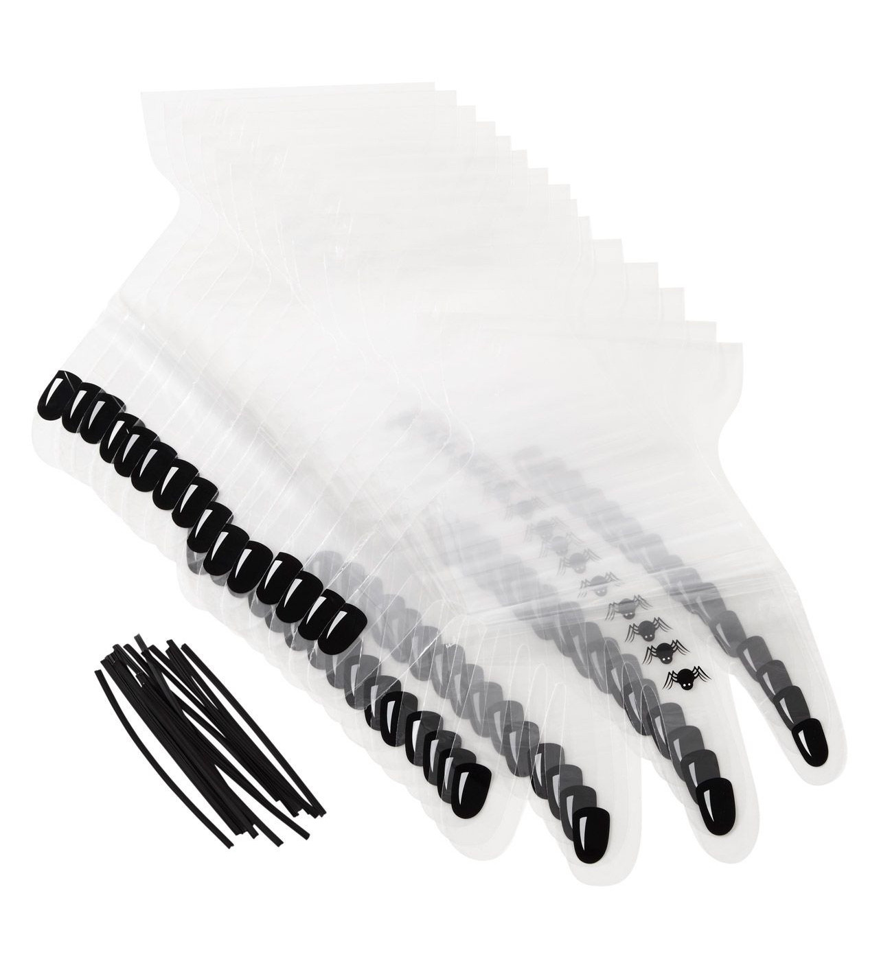 ¡Aquí tienes una forma original de presentar, regalar o recoger tus dulces de Halloween! Esta mano transparente, con uñas negras brillantes, podrá recoger palomitas, caramelos ¡y mucho más!