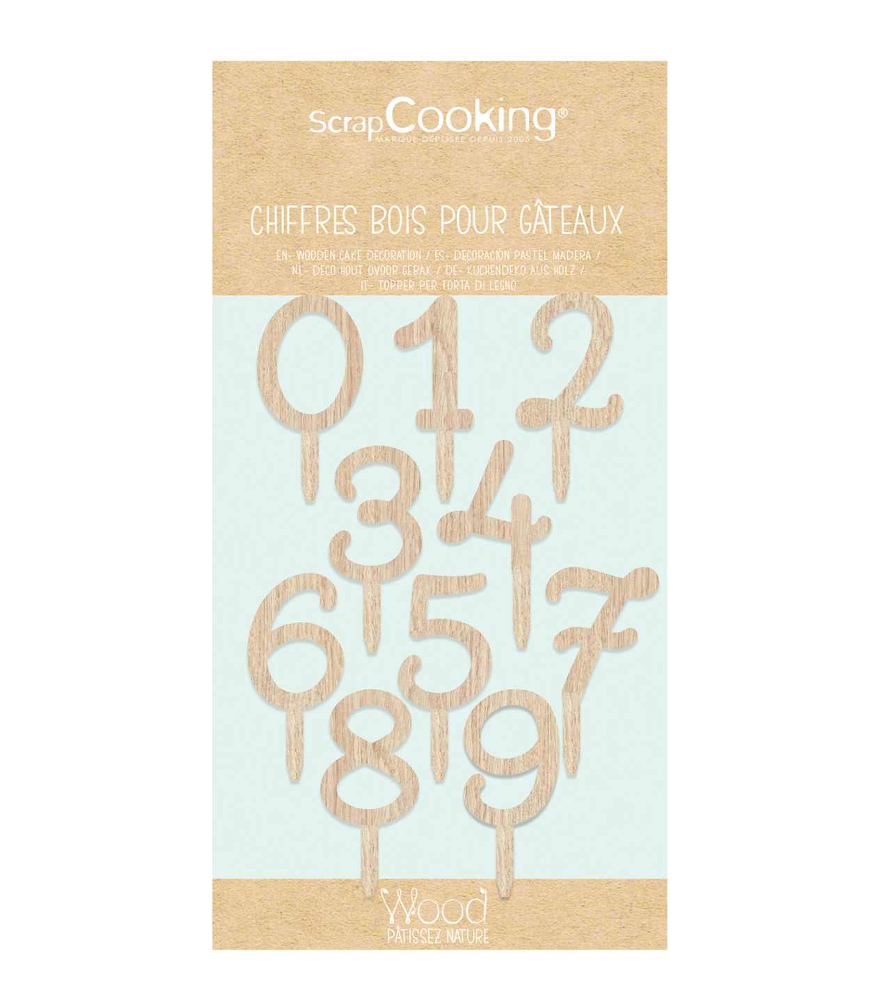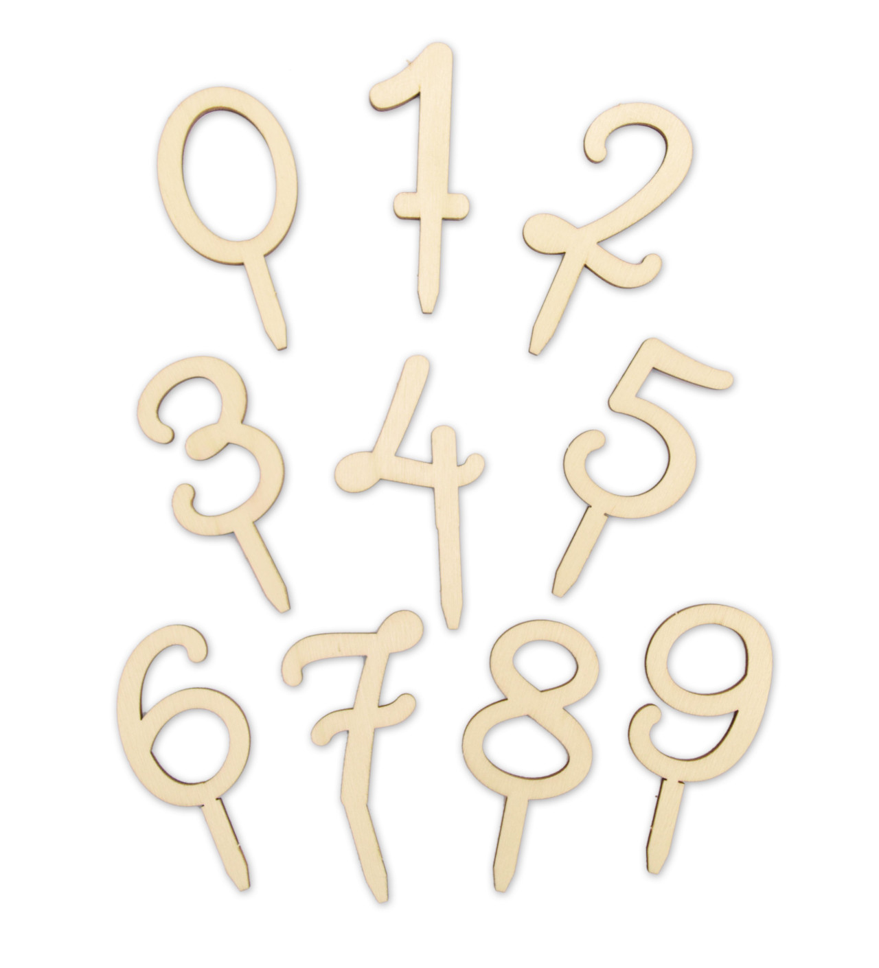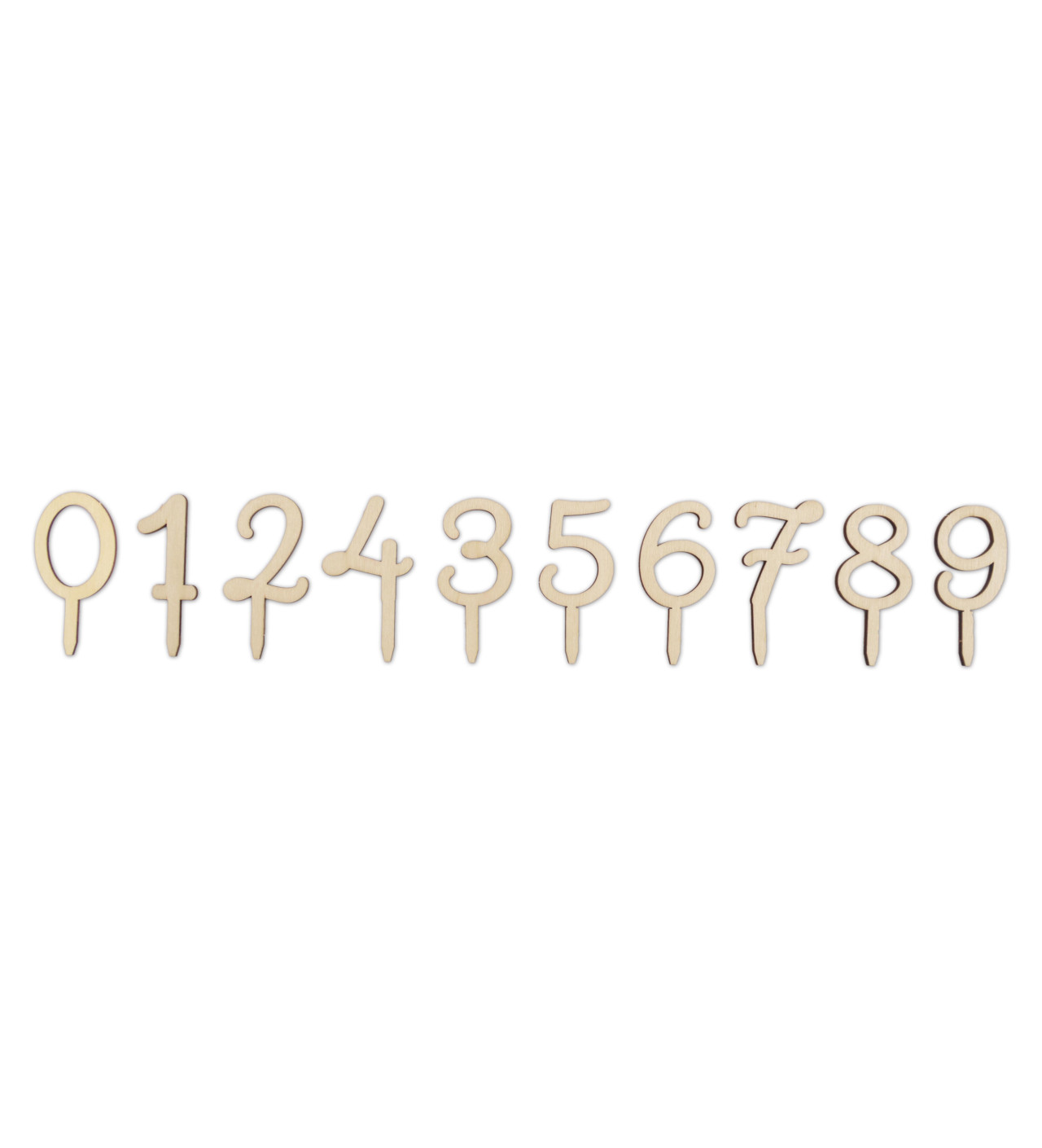Totalmente fabricados en madera, estos adornos para tartas son reutilizables de un año a otro y además son muy prácticos, ya que cada número viene con su propio palito para poder clavarlo fácilmente en tu tarta.