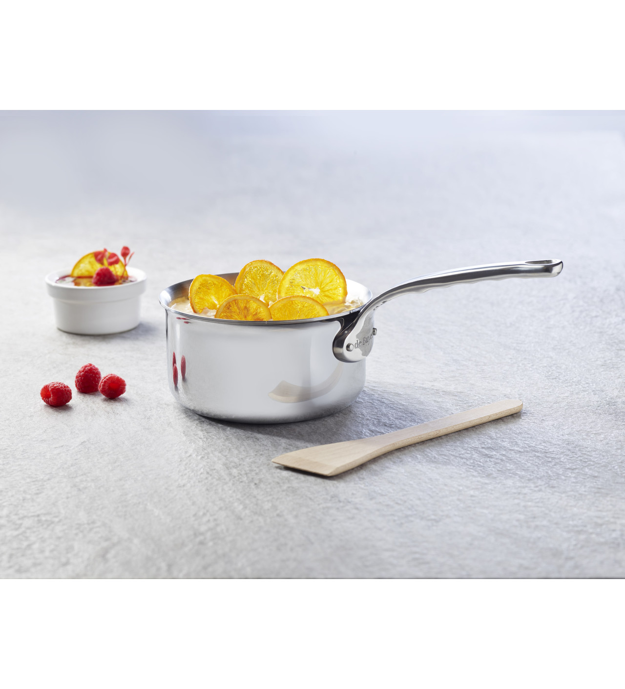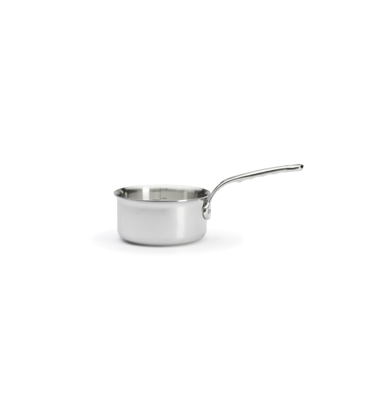 La gama Affinity: Gran tamaño, interior redondo, bordes vertedores, mango ergonómico, aspecto fino y elegante, material multicapa, fabricada en Francia, apta para todas las fuentes de calor, incluida placa de inducción. En el interior del cazo 14 cm de Buyer Affinity, hallarás medidas grabadas, así podrás encontrar el punto perfecto en cada una de tus recetas.