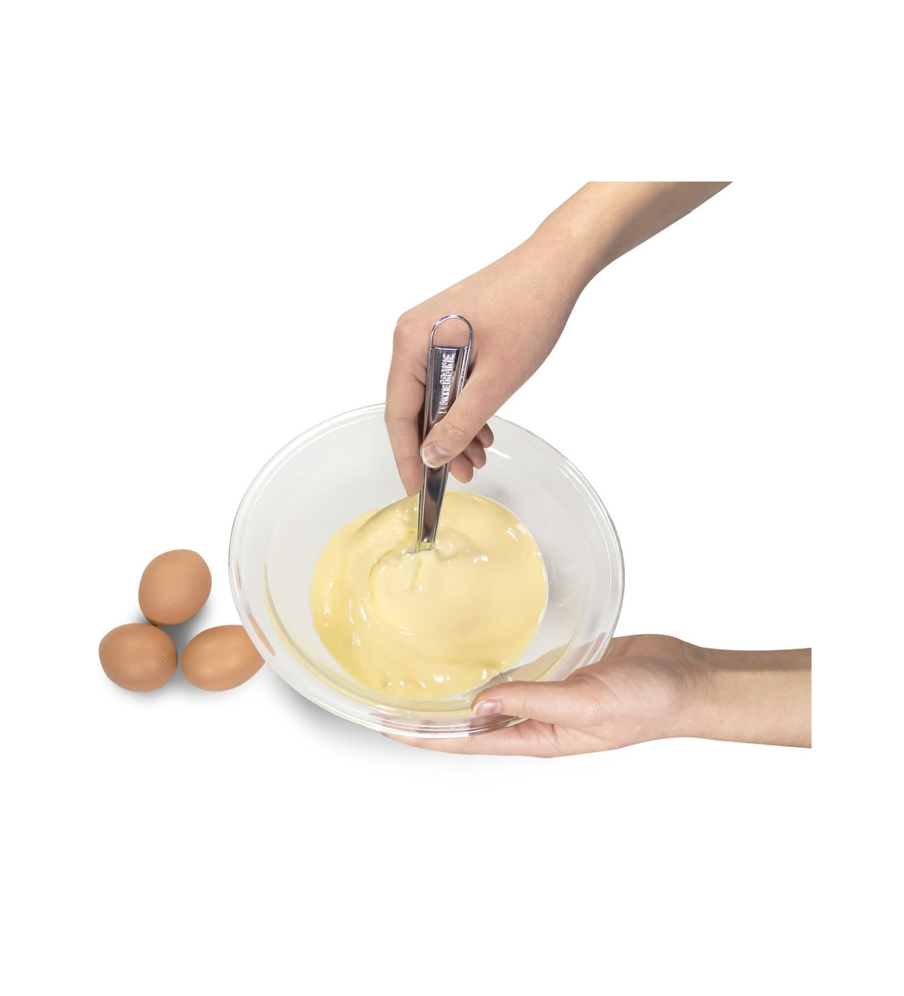 La Cuchara de Cocina de Acero Inoxidable es indispensable para lograr todas tus emulsiones en un abrir y cerrar de ojos y sin grumos: salsas, mayonesa, huevos revueltos, tortillas, vinagretas, bechamel.