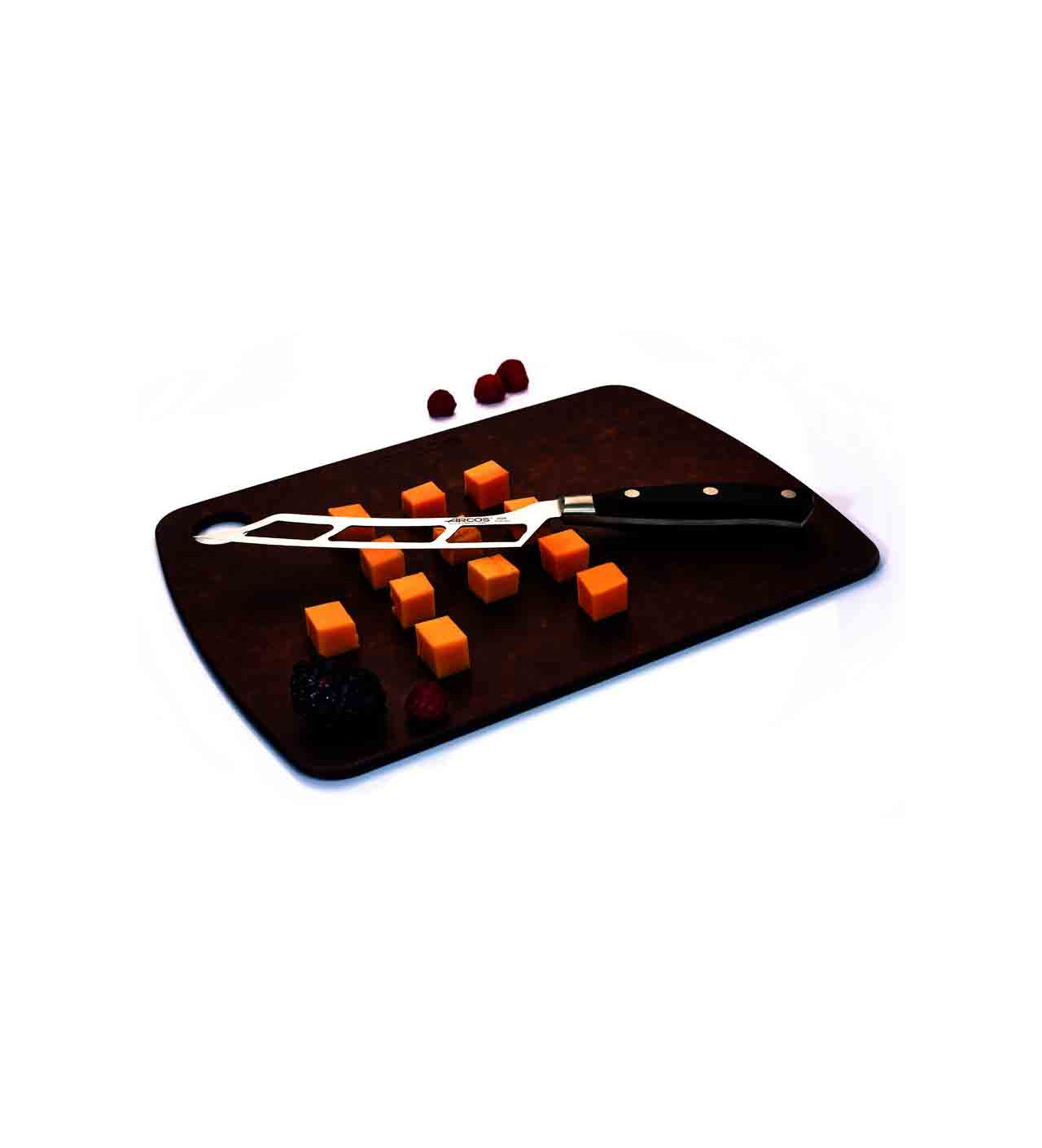 Gracias a su característica hoja con perforaciones, el cuchillo para queso Arcos de la serie Riviera es ideal para cortar quesos blandos, ya que las perforaciones evitan que el queso se adhiera a la hoja, como sucede con los cuchillos de hoja compacta.