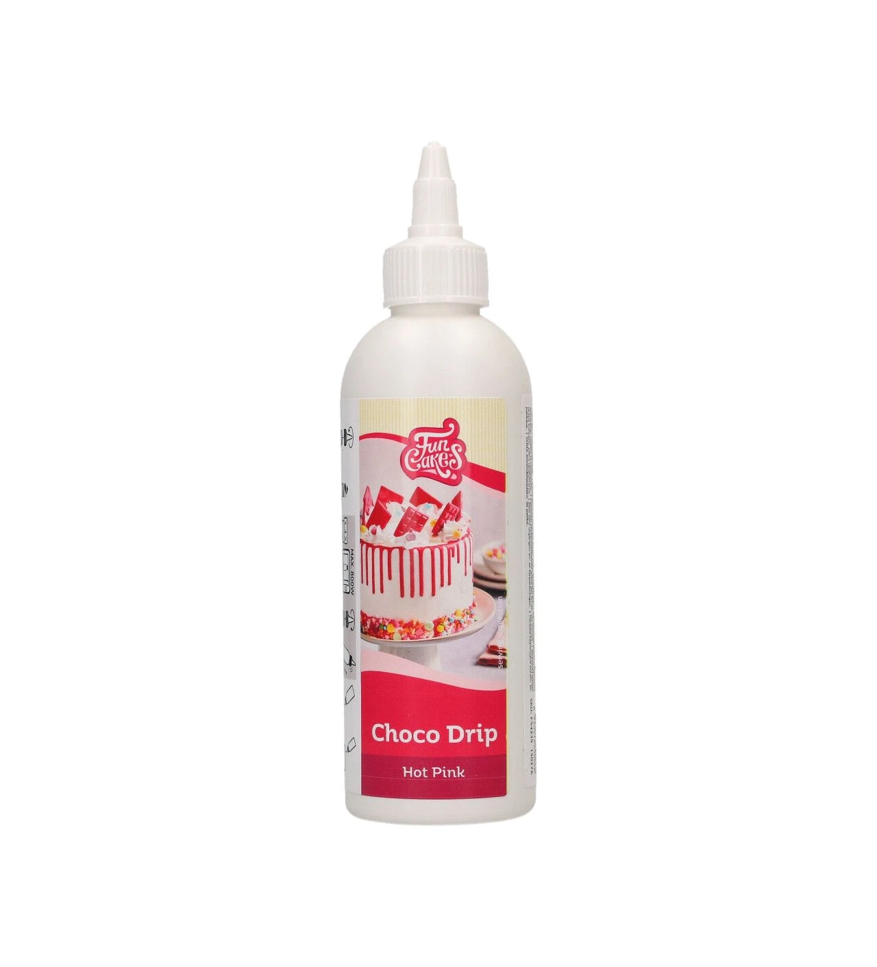 Añade color y dulzura a tus creaciones con el drip de chocolate fucsia Choco Drip FunCakes 180 g.