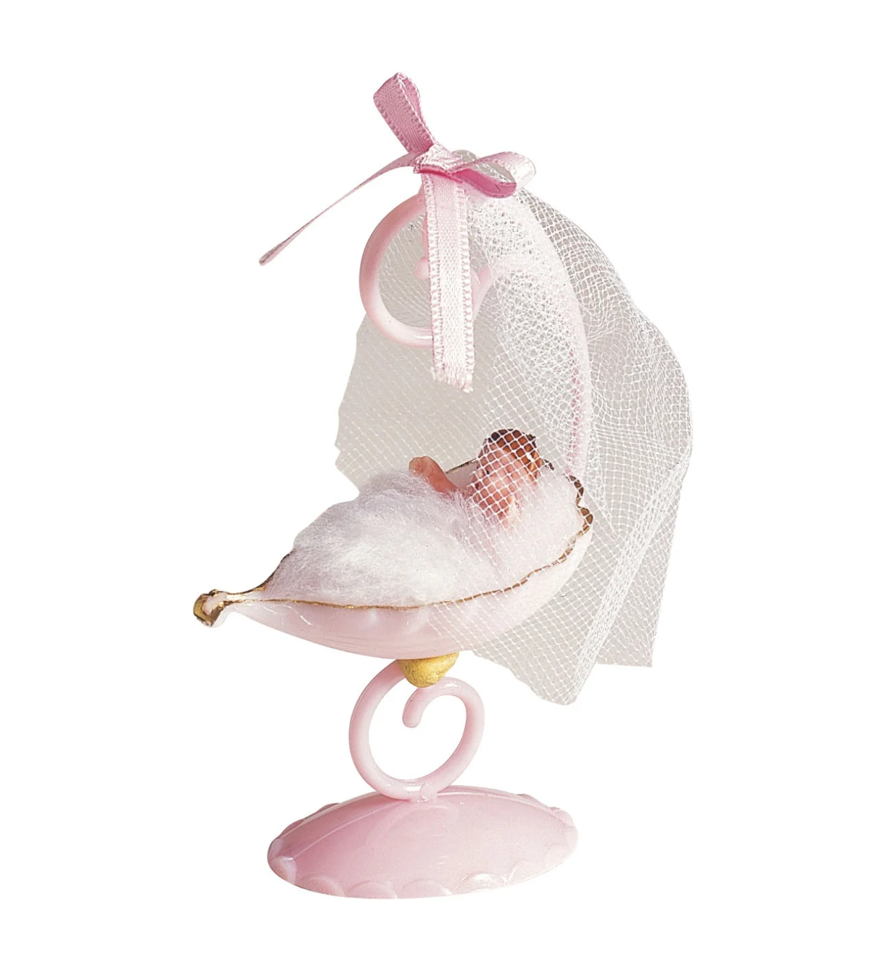 Figura Tarta Bautizo Niña Cuna Rosada 10 cm Nordia