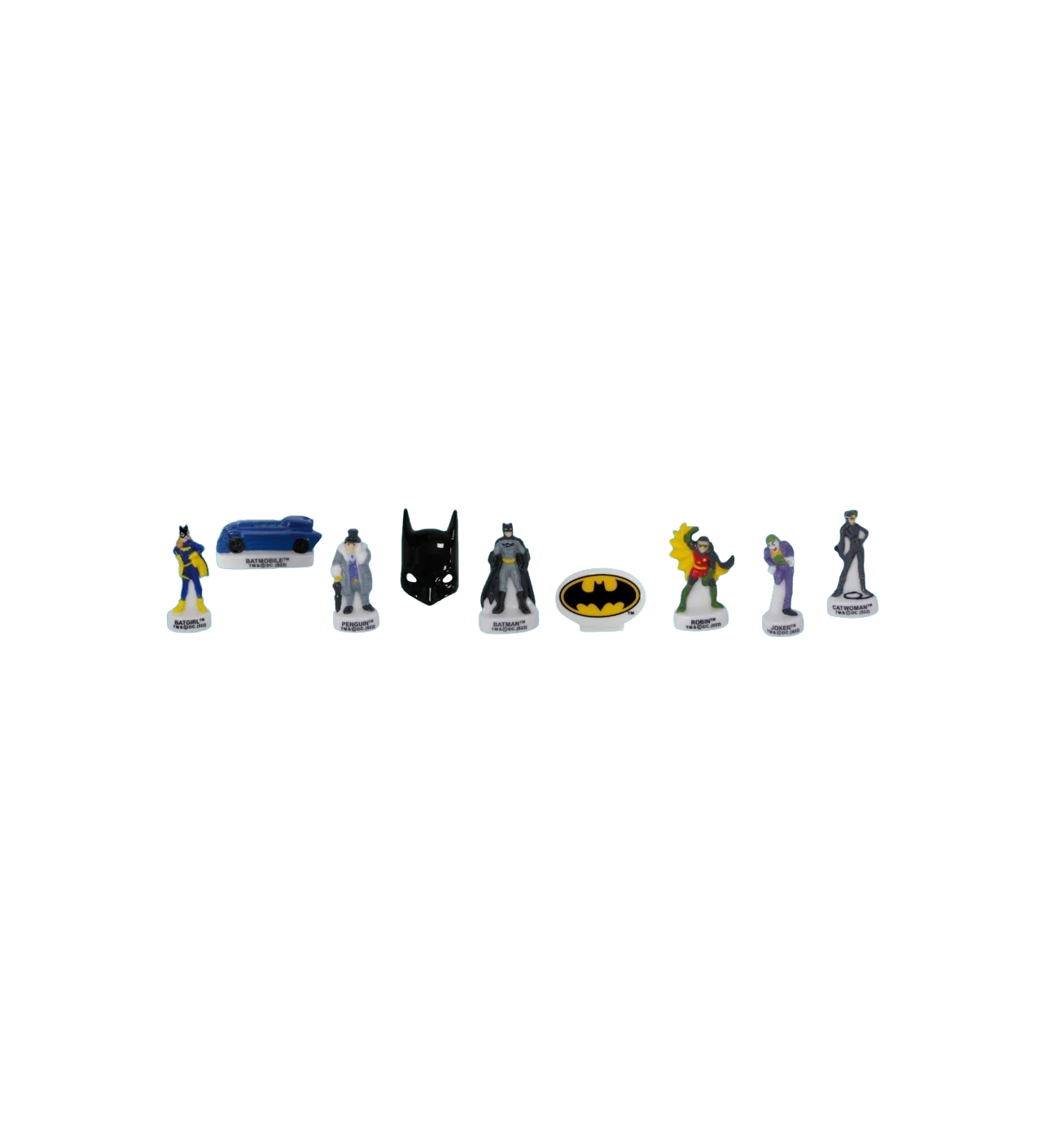 Nada mejor para un fanático de Batman que encontrar una sorpresa en forma de Batman en el roscón de Reyes. Esta genial colección trae 9 figuritas de porcelana: Batman, Batgirl, Batmóvil, la máscara de Batman, el logo de Batman, Robin, el Joker y Catwoman.