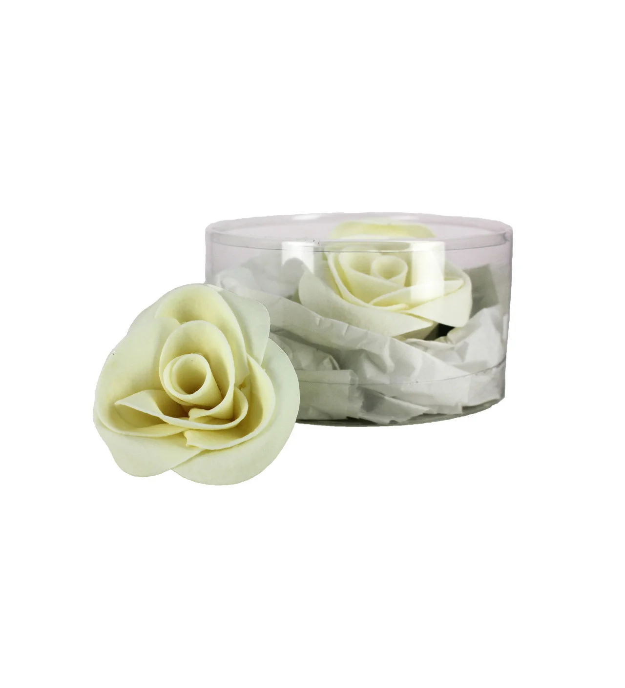 Elabora y decora tu pastel con un toque primaveral gracias a estas flores de azúcar en forma de rosas comestibles blancas. Para un pastel de bodas, un bautizo o unos sencillos cupcakes para la merienda, estas flores de azúcar de 6 cm de diámetro quedarán hermosas en tu pastel.