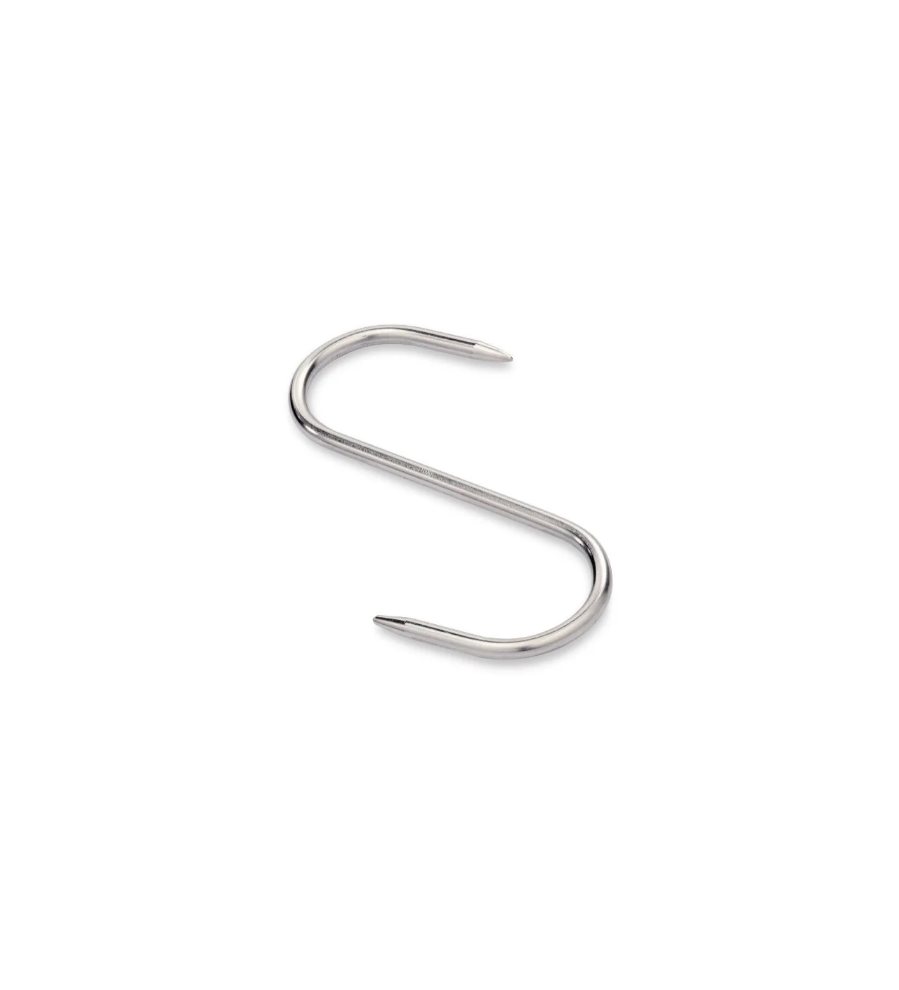 Este gancho carnicero de acero inoxidable tiene una punta aguda en cada extremo que permite pinchar los alimentos sin esfuerzo.