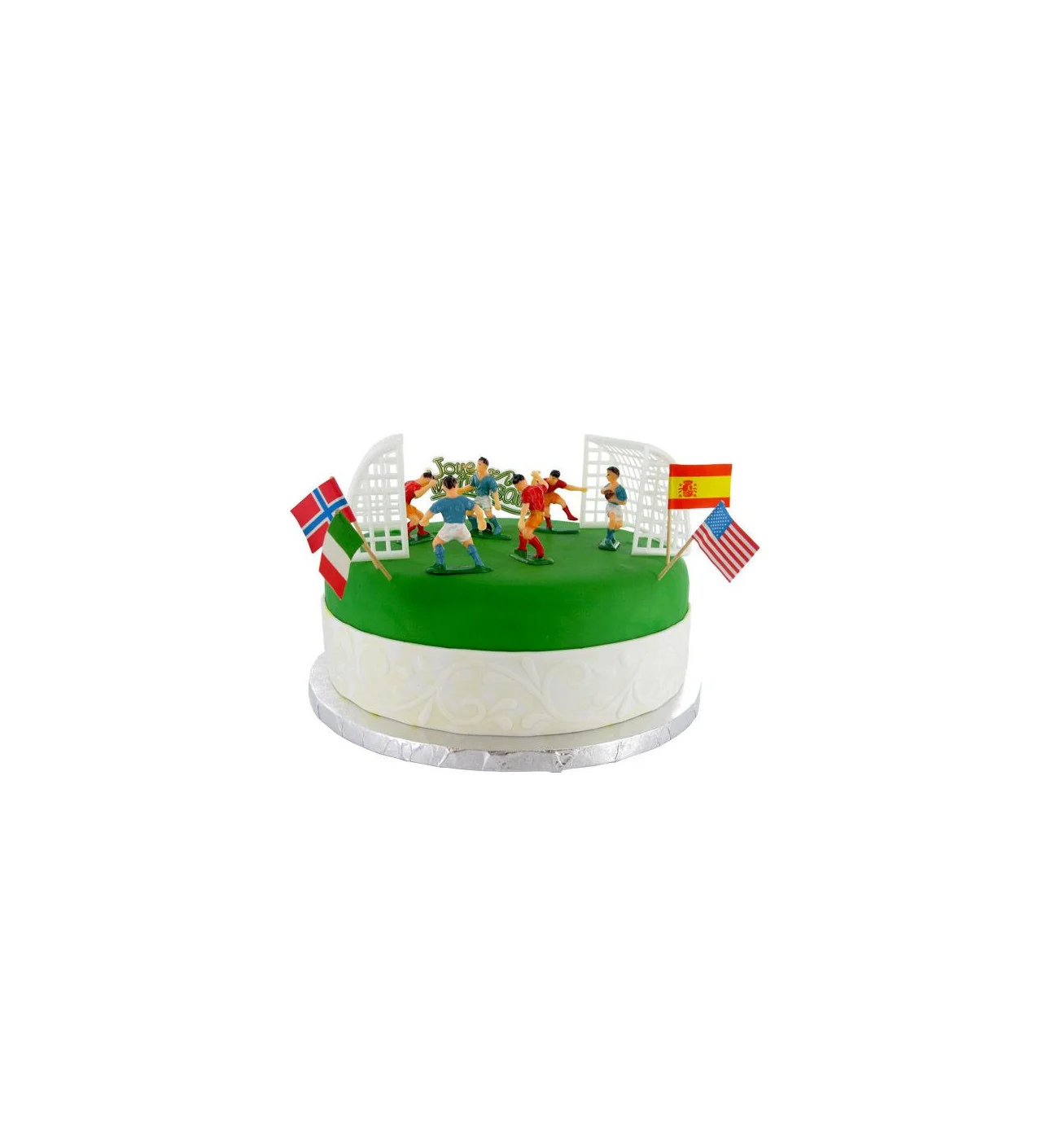 Crea una fantástica decoración de tarta de fútbol con este kit. Este juego de decoraciones para tarta es ideal para una tarta de cumpleaños de un aficionado al fútbol, para celebrar una victoria… ¡o incluso para una noche de partido frente a la televisión!