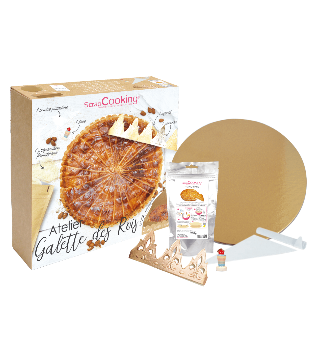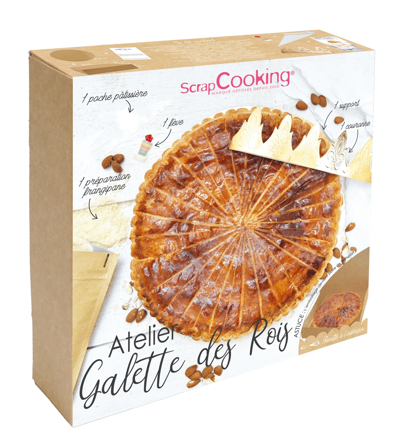 Atrévete a preparar la deliciosa tarta de reyes francesa, conocida como galette des rois, y logra hacer que el hojaldre y la frangipane queden de maravilla. Cocina una galette des rois casera para la épiphanie con las instrucciones de este paquete completo para galette des rois de Scrapcooking (en francés).
