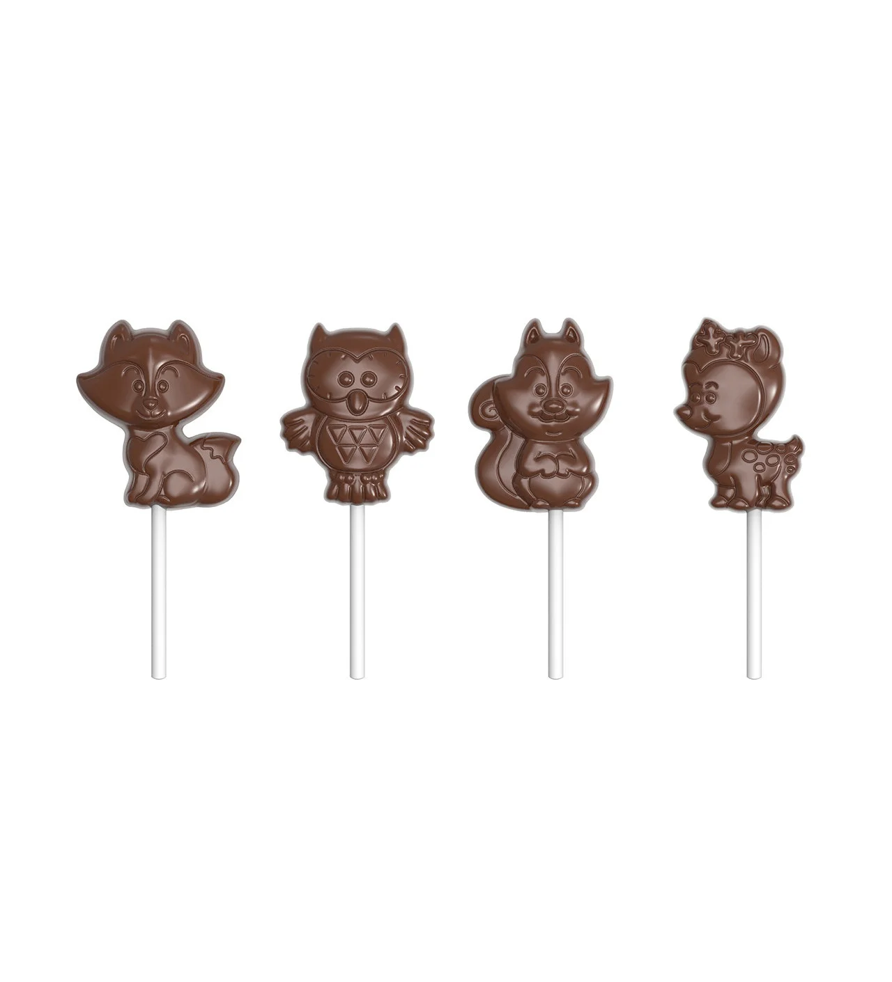 Molde piruleta chocolate animales del bosque 65 mm (x4) Chocolate World