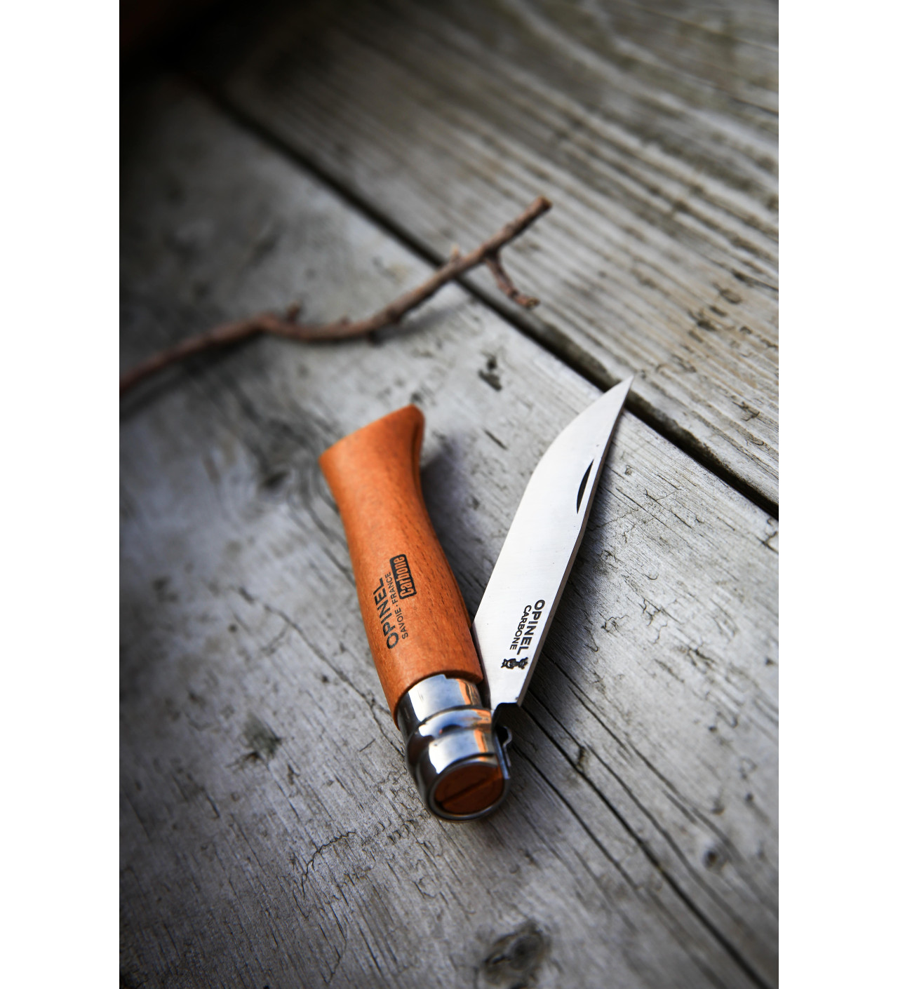 Tan resistente como fácil de transportar, la navaja Opinel N°6 es una herramienta imprescindible para exploradores y amantes de la buena cocina. Como todas las navajas de bolsillo de la marca, basta con plegar la Opinel Carbono N°6 para guardarla cómodamente en el bolsillo. Útil en cualquier lugar y para todo tipo de tareas, esta navaja plegable está compuesta por una hoja de acero al carbono dura y resistente, y un mango ergonómico de madera. Esta combinación proporciona robustez y un agarre excelente para un uso óptimo.