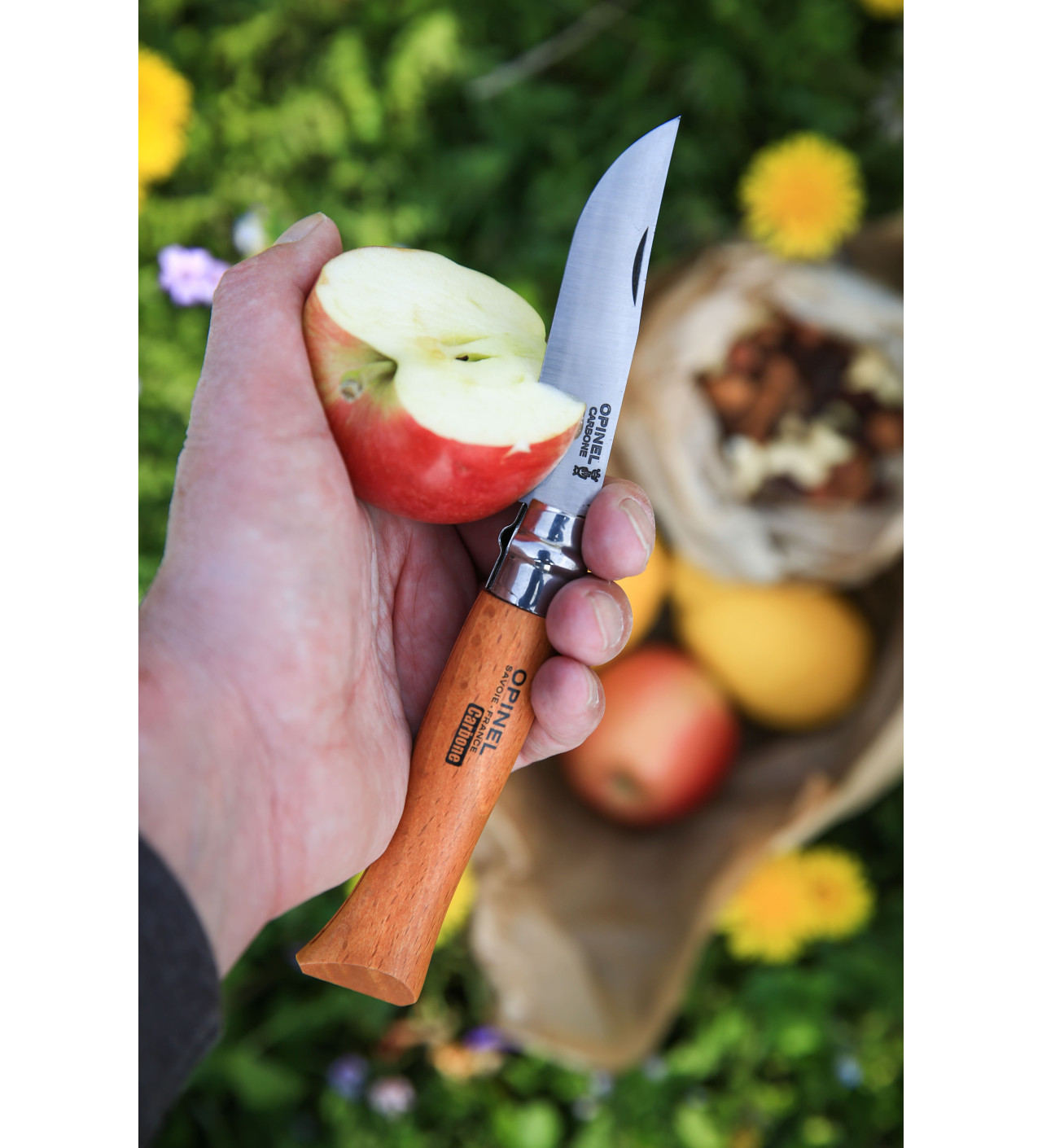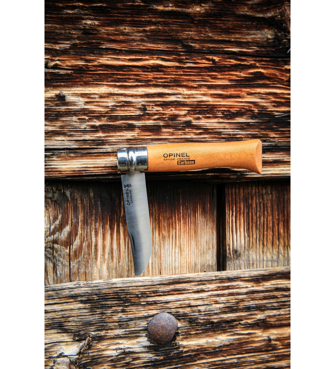 Cocinar, cazar, acampar, arreglar cosas en casa… el único utensilio que te acompañará en cualquier circunstancia es la navaja Opinel N°9. Diseñada para ofrecerte la mayor comodidad posible, esta navaja plegable cuenta con un mango ergonómico de madera de haya. Además, el color natural de esta Opinel Carbono aporta un aire artesanal y auténtico a su diseño.