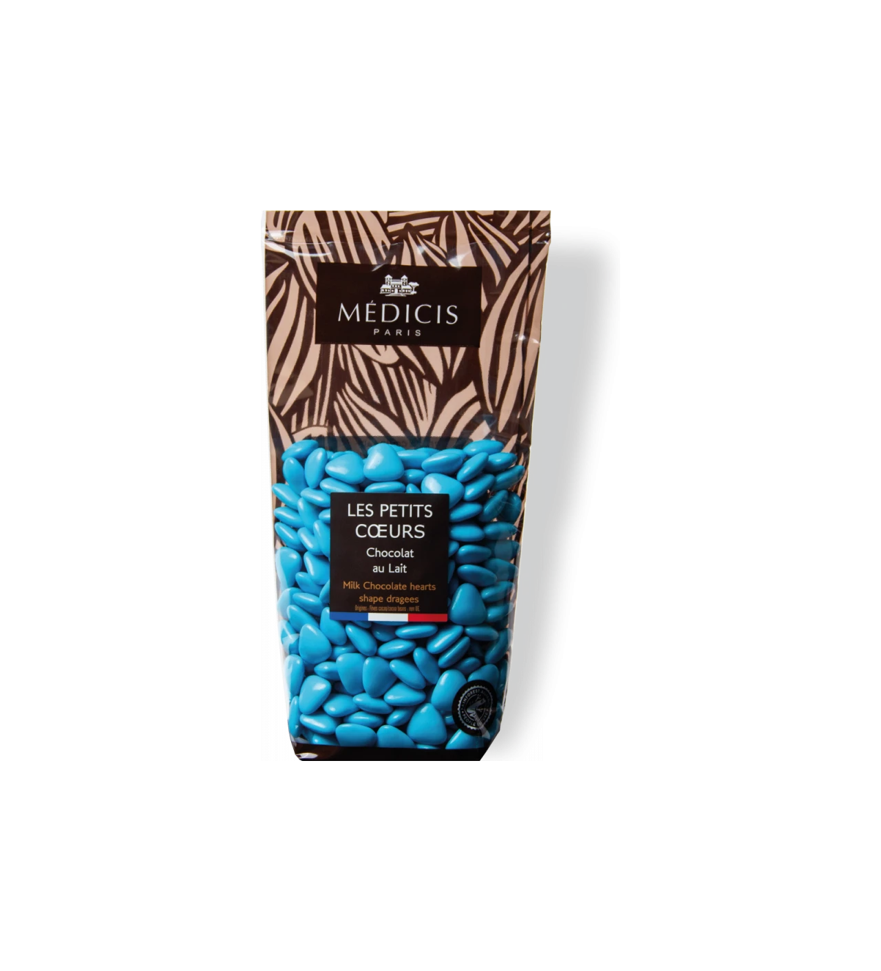 ¿Tienes antojo de deliciosas y preciosas peladillas de chocolate? Escoge las peladillas azules en forma de corazoncitos de Médicis, rellenas de un sabroso chocolate con leche. La confitería de Médicis selecciona productos de alta calidad para brindarte un producto excepcional.