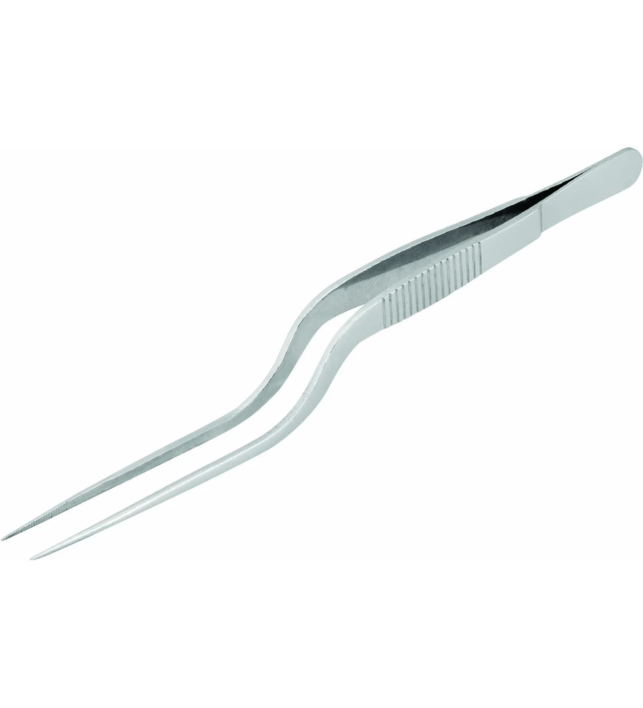 La pinza para emplatar curvada acero inoxidable 16 cm de Mallard Ferrière te permite decorar tus platos, adornar tus pasteles y montar tu sushi con precisión. Su forma curva facilita el trabajo y te permite tener una visión más clara de lo que estás haciendo. Las estrías de la pinza de cocina situadas en el extremo y en el mango evitan que tu mano y los elementos que manipulas se deslicen, garantizando un trabajo impecable.