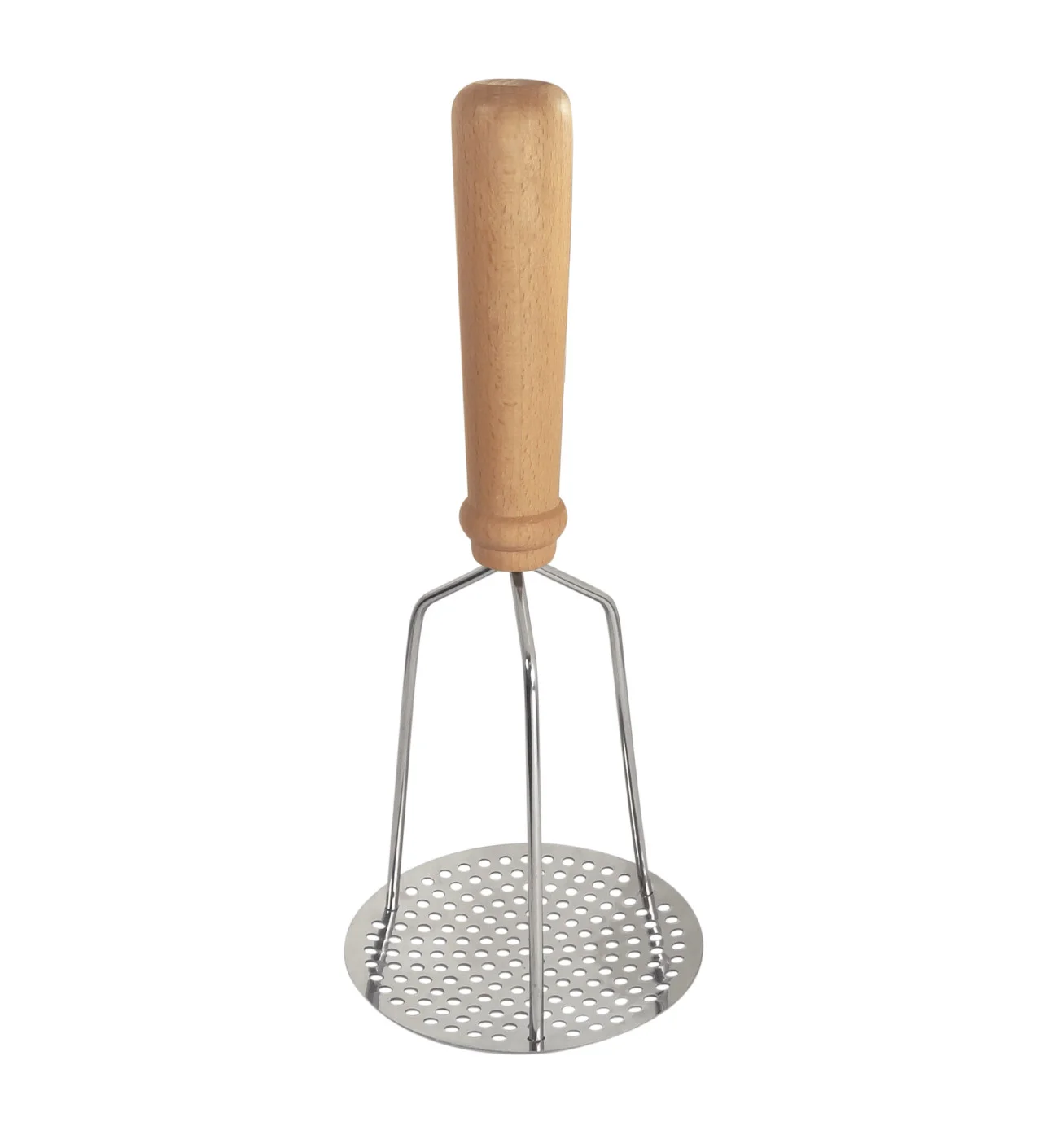 El mango de madera facilita el agarre del prensa puré.