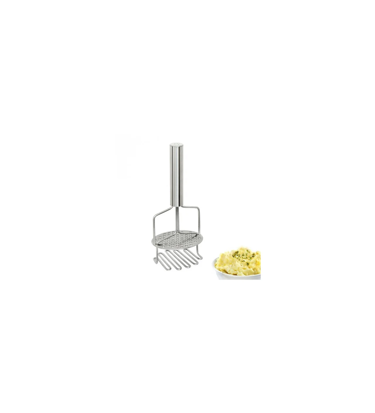 ¡El placer de redescubrir el puré con el sabor auténtico y la esencia de antaño! Este prensador de patatas de acero inoxidable es sólido y resistente. Compuesto de dos rejillas articuladas, atrae por su diseño y su practicidad.