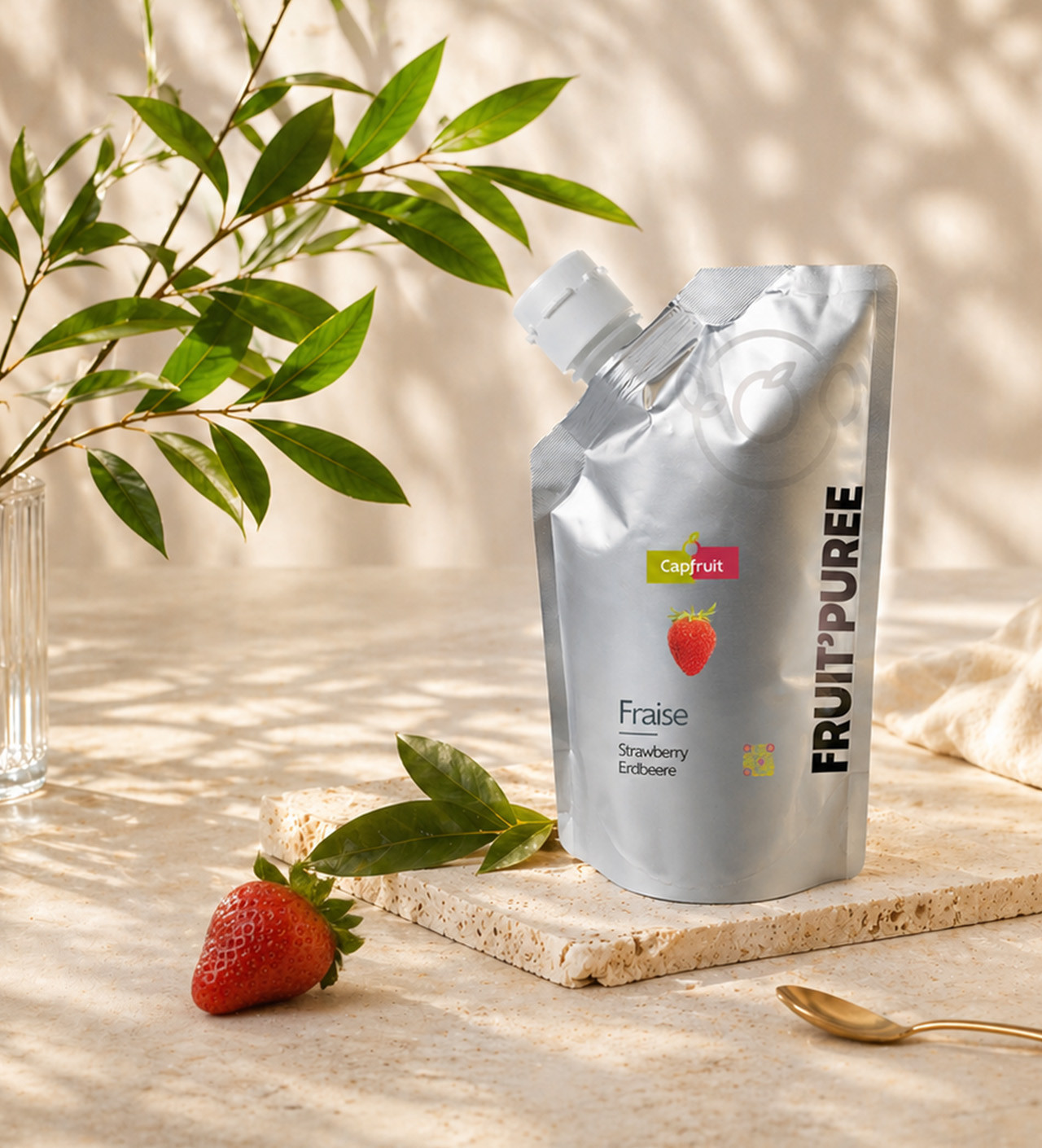 ¿Te apetece hacer un postre con un intenso sabor a fresa, macarons con un centro afrutado o sabrosos y refrescantes helados? Descubre el puré de fresa Capfruit. Auténtico concentrado de fresa, este puré de frutas te ofrece la posibilidad de crear una infinidad de recetas.