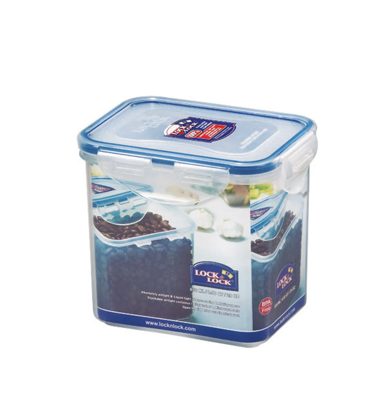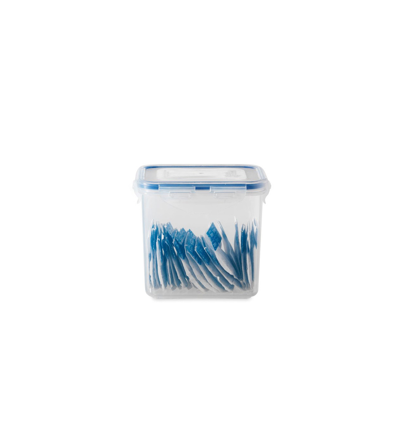 Este táper de plástico presenta una capacidad de 850 ml, está compuesto de plástico sin bisfenol A (BPA) y cuenta con 4 pestañas de cierre que se fijan a la junta de silicona flexible. Este sistema de cierre garantiza una hermeticidad perfecta impidiendo la entrada de aire y humedad, principales causantes del deterioro de los alimentos.