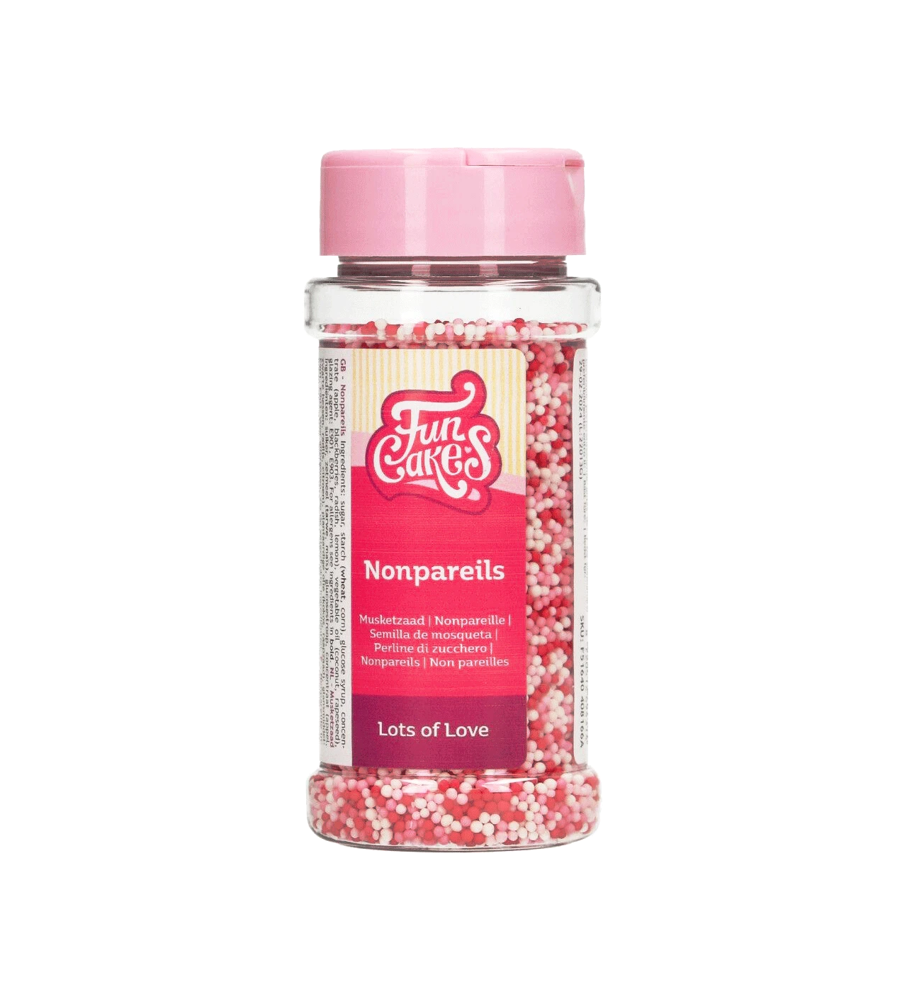 Sprinkles nonpareil rojas, rosas y blancas 80 g Funcakes