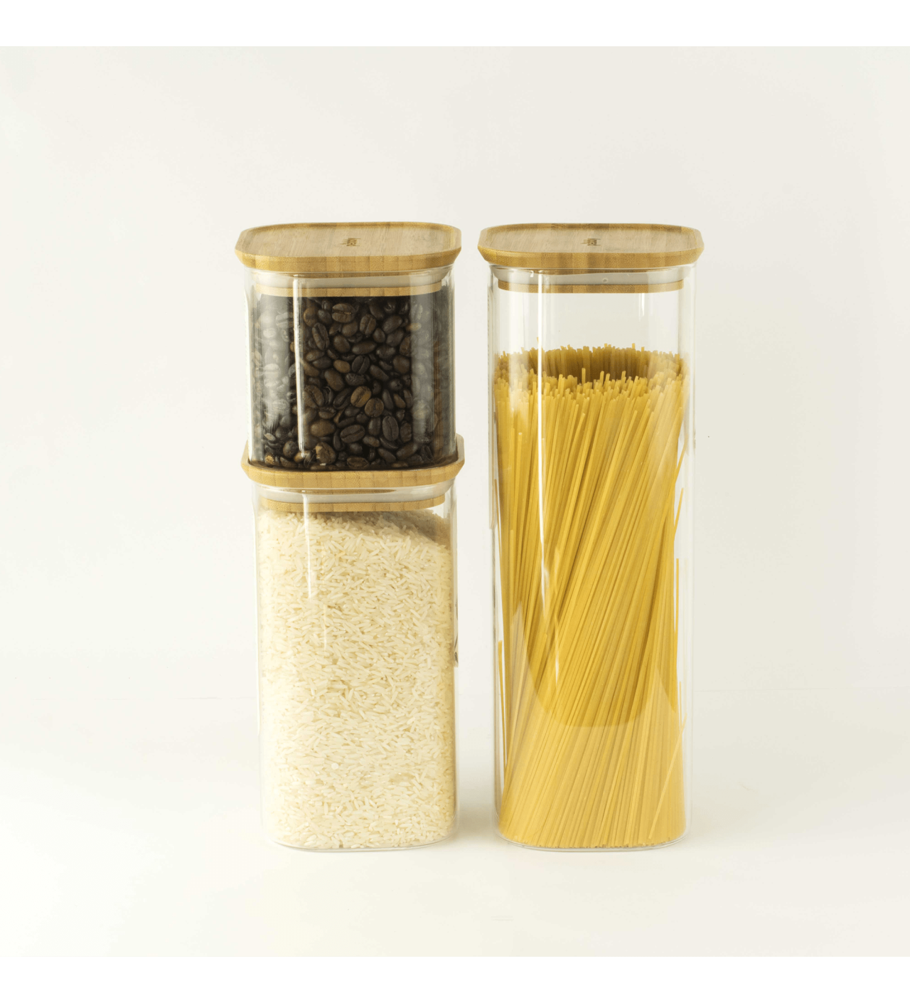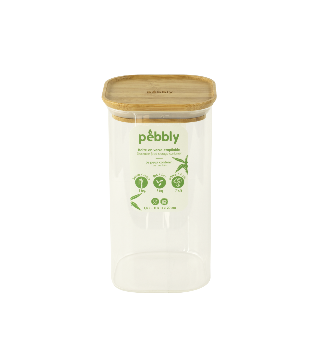 Tarro de Cristal con Tapa de Bambú cuadrado 1,4 L Pebbly