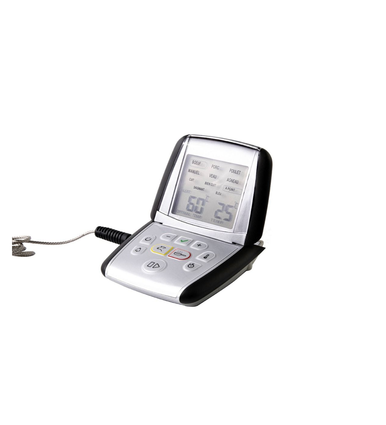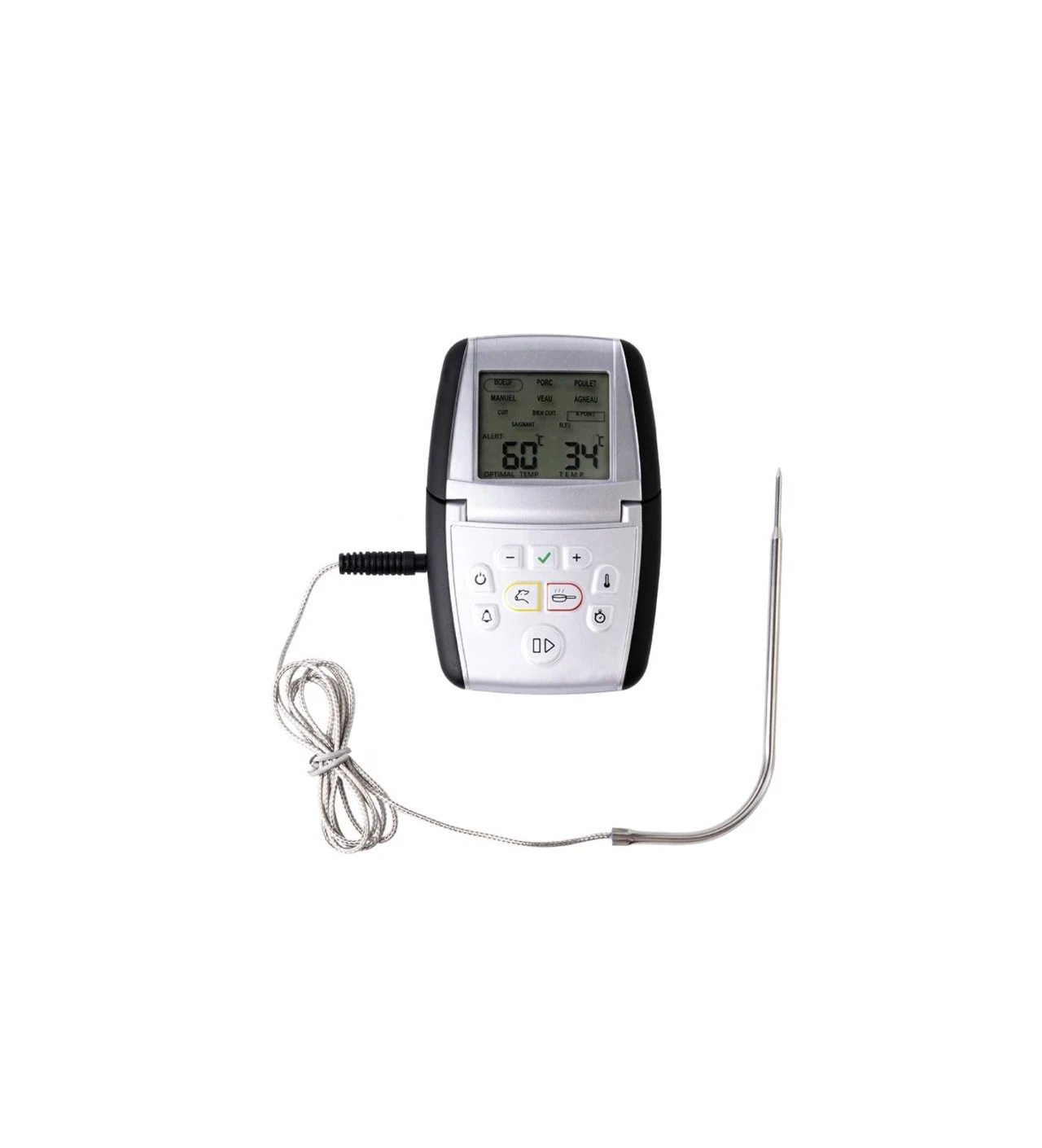 La pantalla digital inclinable facilita la lectura de la temperatura. Además, este termómetro puede medir temperaturas desde 0° hasta +210°C. Este termómetro con sonda también cuenta con la función de temporizador.