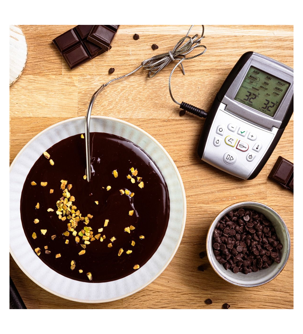 Sigue con precisión la cocción de tus alimentos gracias al termómetro de cocina con sonda Mastrad, que te indicará la temperatura con la máxima precisión. La sonda de acero inoxidable es ideal para la cocción de jarabes de azúcar, mermeladas o aceite para freír.