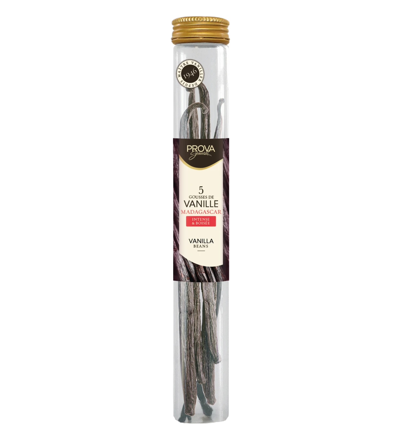 Las 5 vainas de vainilla de 17 cm vienen en un tubo de vidrio, por lo que son perfectas para conservar todo el sabor de la vainilla. No olvides colocarlas en un lugar fresco y seco sin exposición a la luz para garantizar que las vainas de vainilla Bourbon mantengan su aspecto y cualidades gustativas.