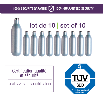 Descubre también nuestros sifones para agua de Seltz, ideales para preparar bebidas gaseosas (se necesita recargas específicas para estos modelos y su uso).