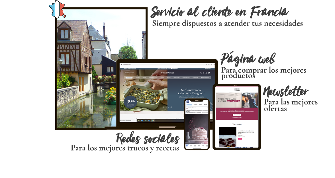No es ningún secreto que los amantes de la buena comida son nuestra prioridad diaria y convertirnos en cómplices de tus ideas culinarias es: ¡nuestra misión principal! Por eso, cada día, nuestro equipo se esfuerza por ofrecerte ventajas únicas: ideas de recetas a través de las redes sociales, descuentos excepcionales en nuestras newsletters… Y desde la ciudad de Amilly (45) en Francia, nuestro servicio de atención al cliente siempre está dispuesto a escucharte y a satisfacer todas tus necesidades, ¡sin dudar en compartirte pequeños trucos culinarios!