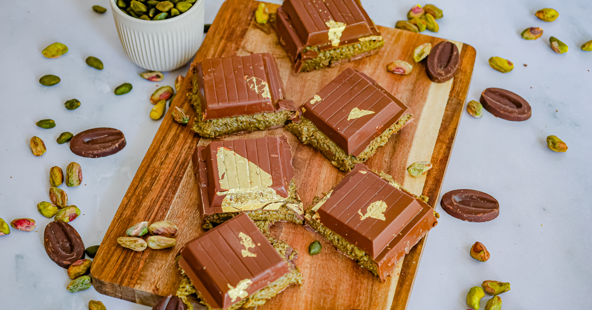 Es imposible pasar por alto la tendencia de las redes sociales: ¡la barra de chocolate Dubái! Esta versión ultra deliciosa y de gran tamaño combina chocolate suave, cremoso praliné de pistacho y crujientes trozos kataifi. Una irresistible receta de chocolate, perfecta para compartir (¡o no!) con los verdaderos amantes del chocolate. ¿Te animas a darte un capricho? Descubre nuestra forma casera de preparar una barra de chocolate Dubái y déjate tentar por la explosión de sabores.